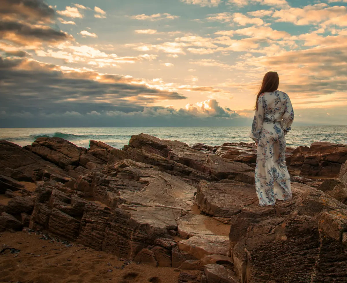 Elle puise son inspiration dans la nature, dans la légèreté de la brume au petit matin et dans l’élégance intemporelle des silhouettes qu’elle enveloppe.
